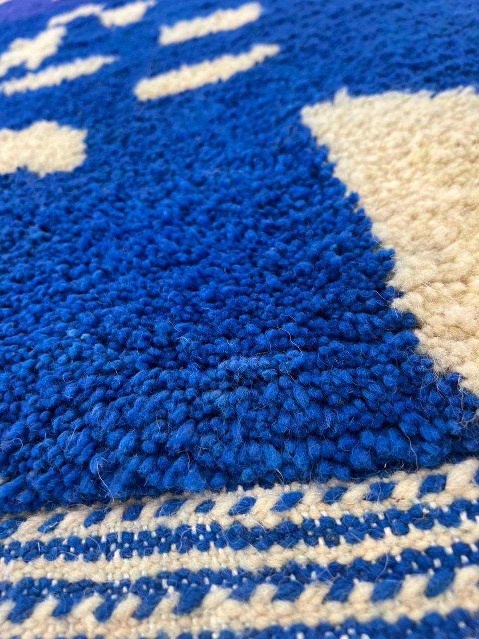 Each rug is meticulously handwoven by skilled Moroccan artisans using centuries-old techniques passed down through generations. The bold blue symbolizes protection and spirituality in Berber culture, while every knot tells a story of tradition and craftsmanship. The luxurious wool pile is soft underfoot and built to last for years.