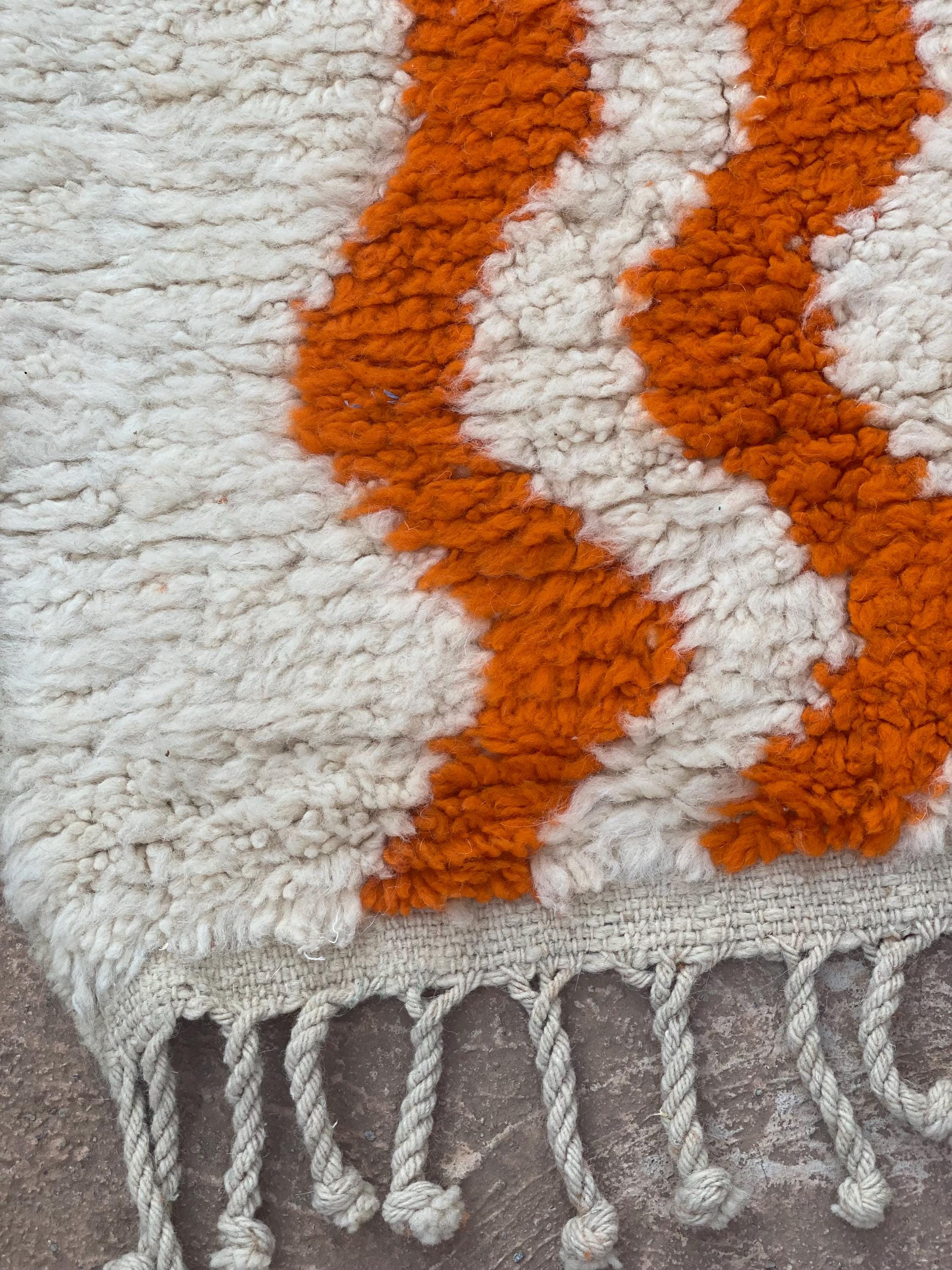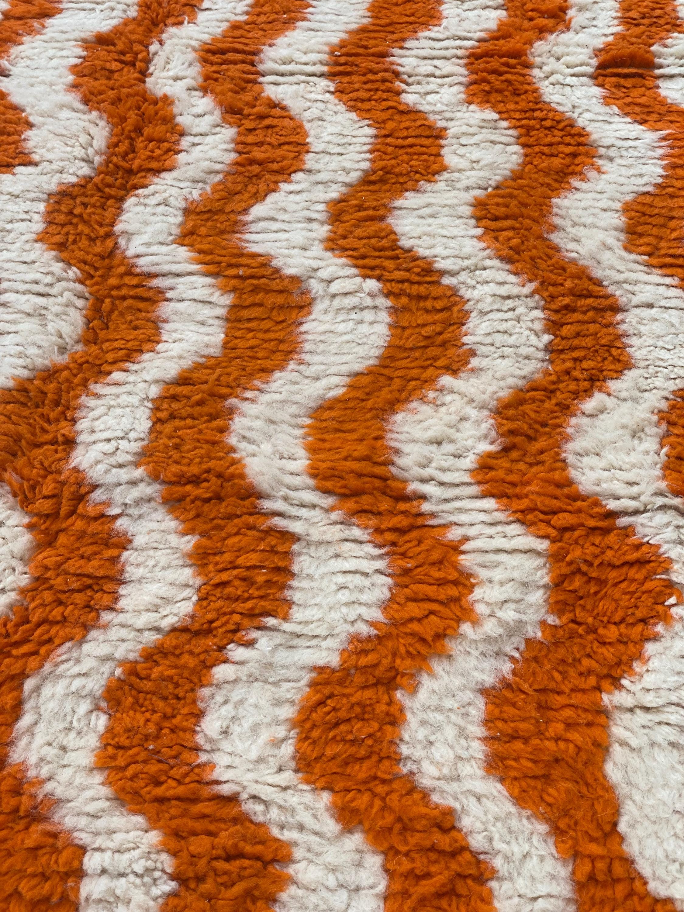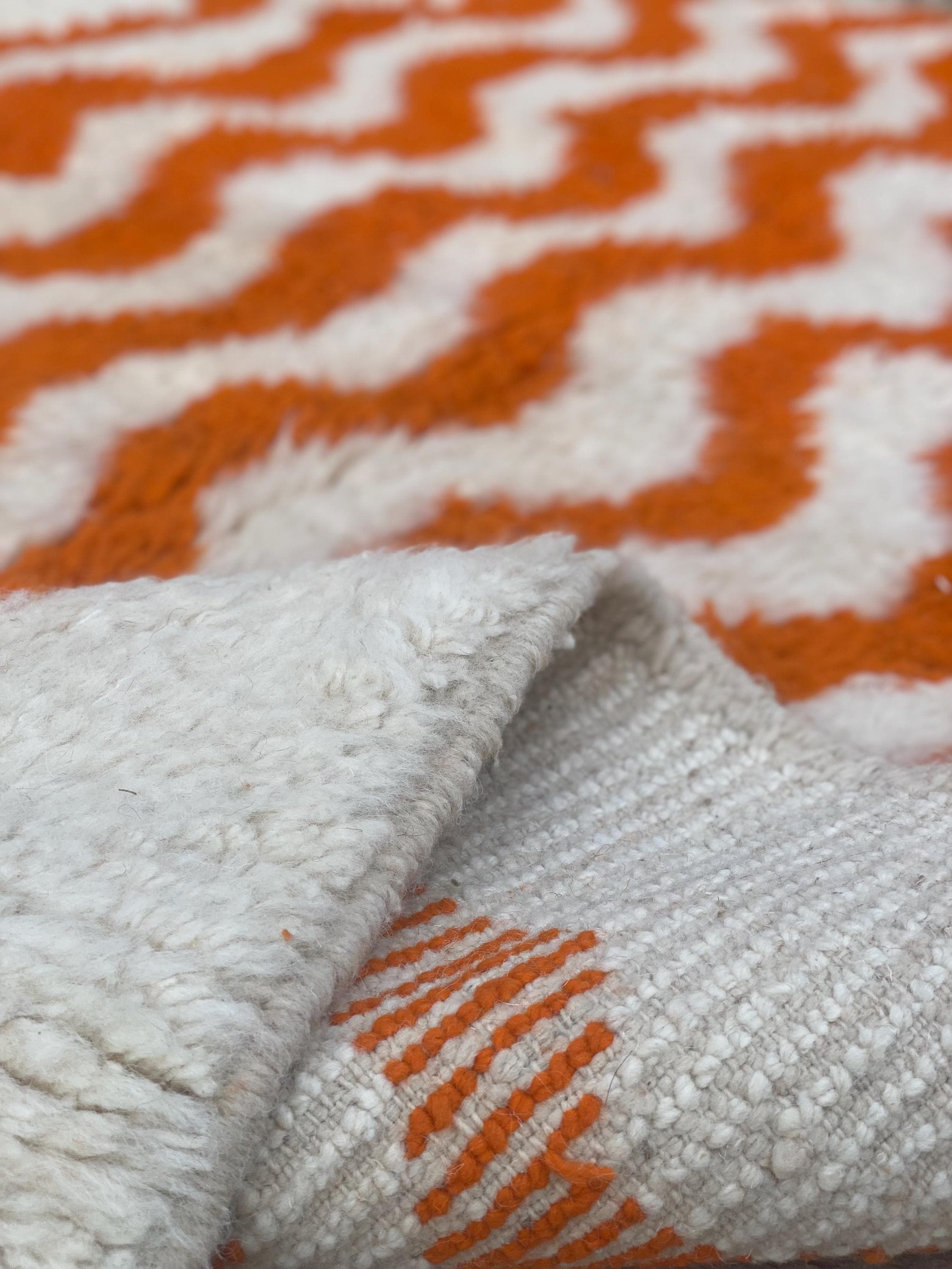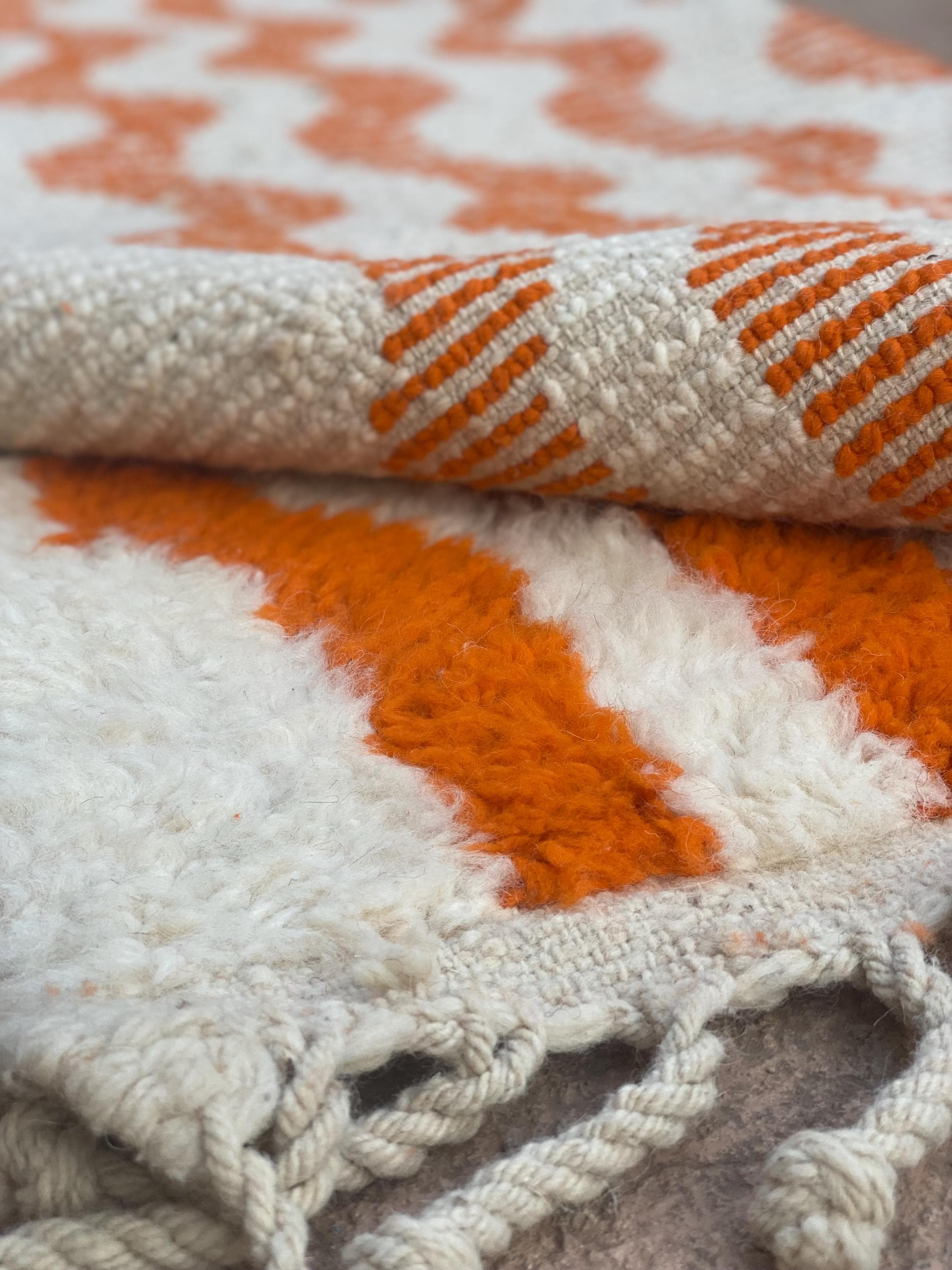 Add a splash of Moroccan sunshine to your space with this stunning handwoven orange and cream chevron rug. Each wave is carefully crafted by skilled Berber artisans using traditional techniques passed down through generations.