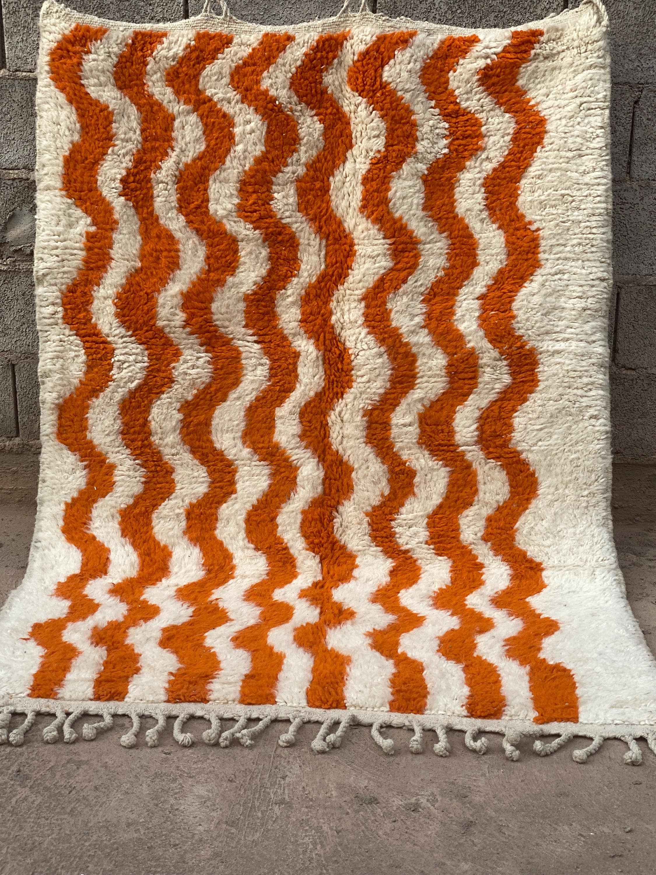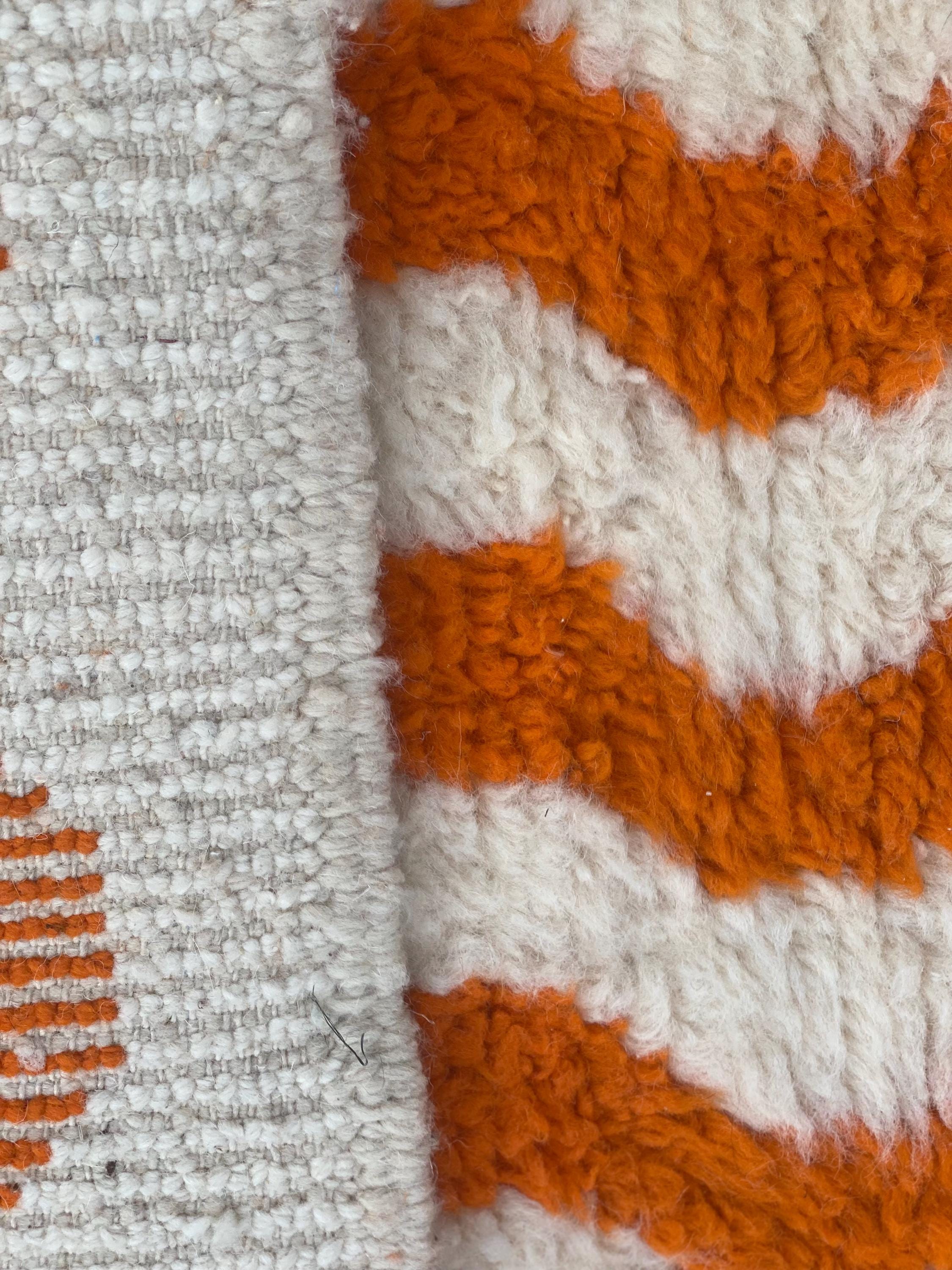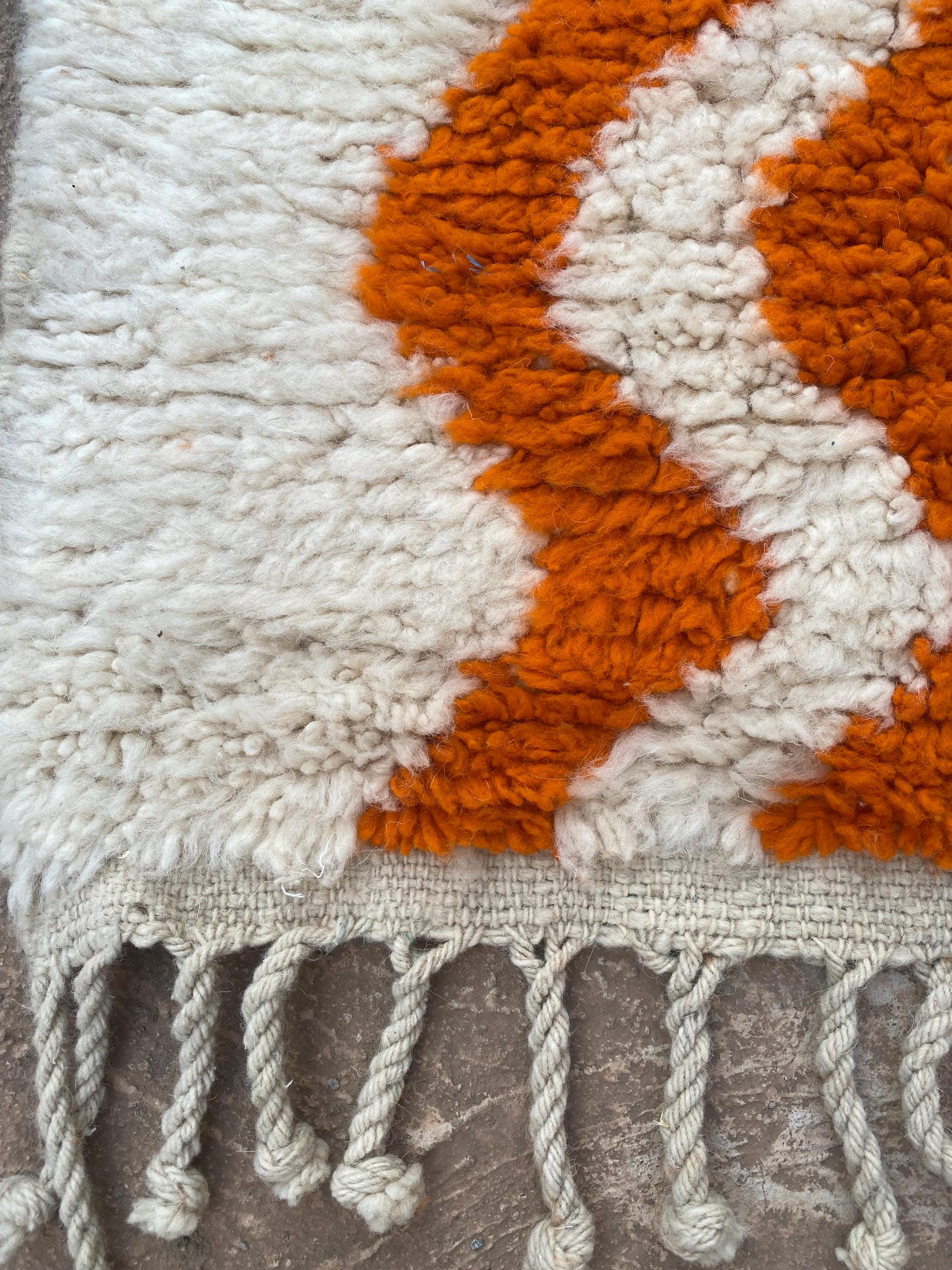 Add a splash of Moroccan sunshine to your space with this stunning handwoven orange and cream chevron rug. Each wave is carefully crafted by skilled Berber artisans using traditional techniques passed down through generations.
