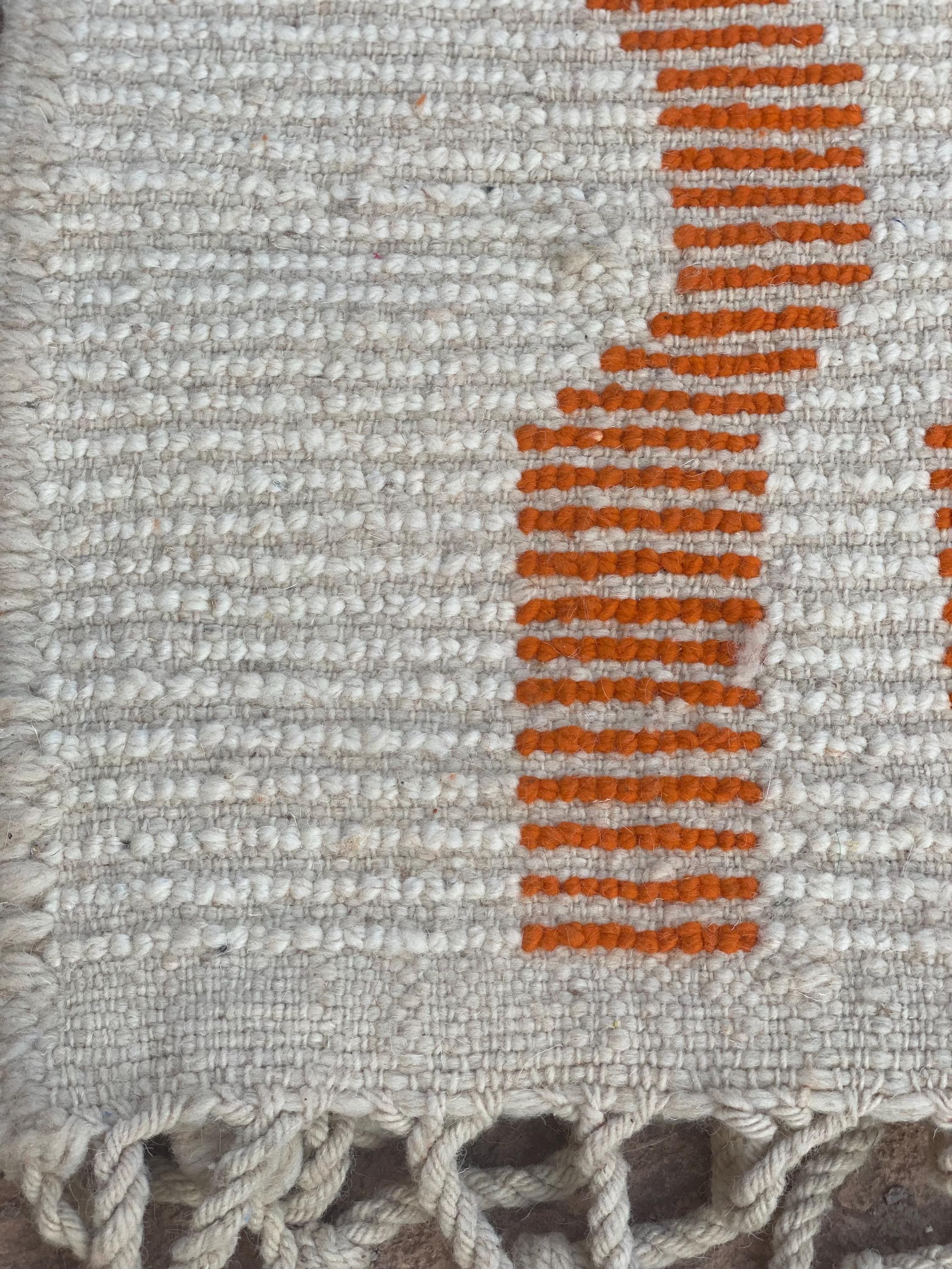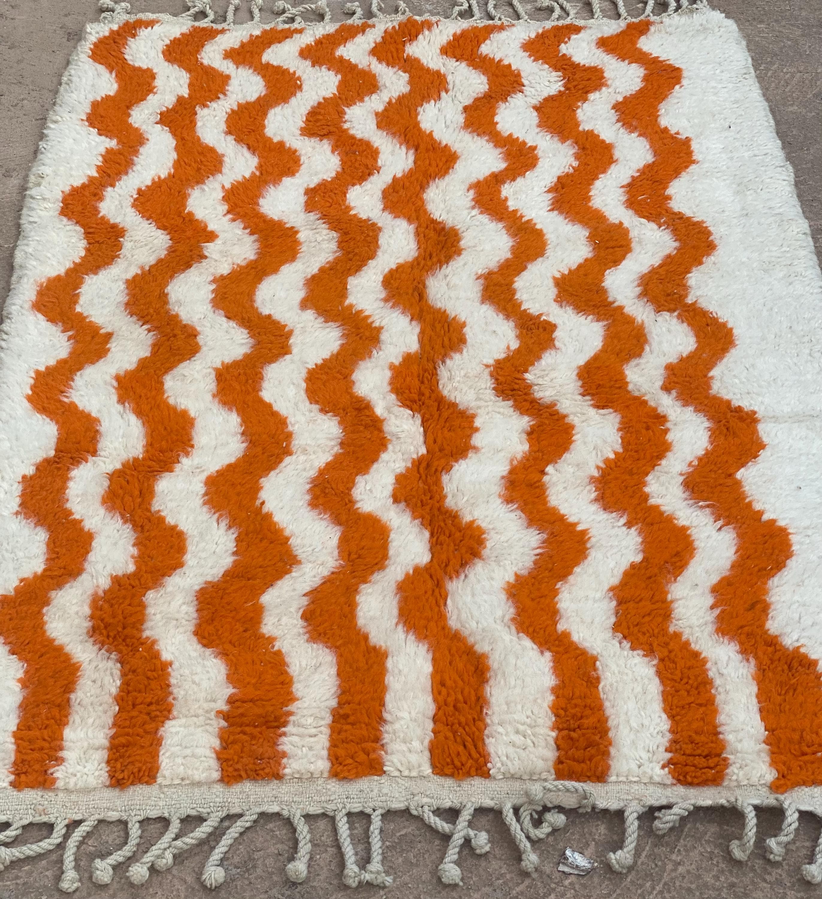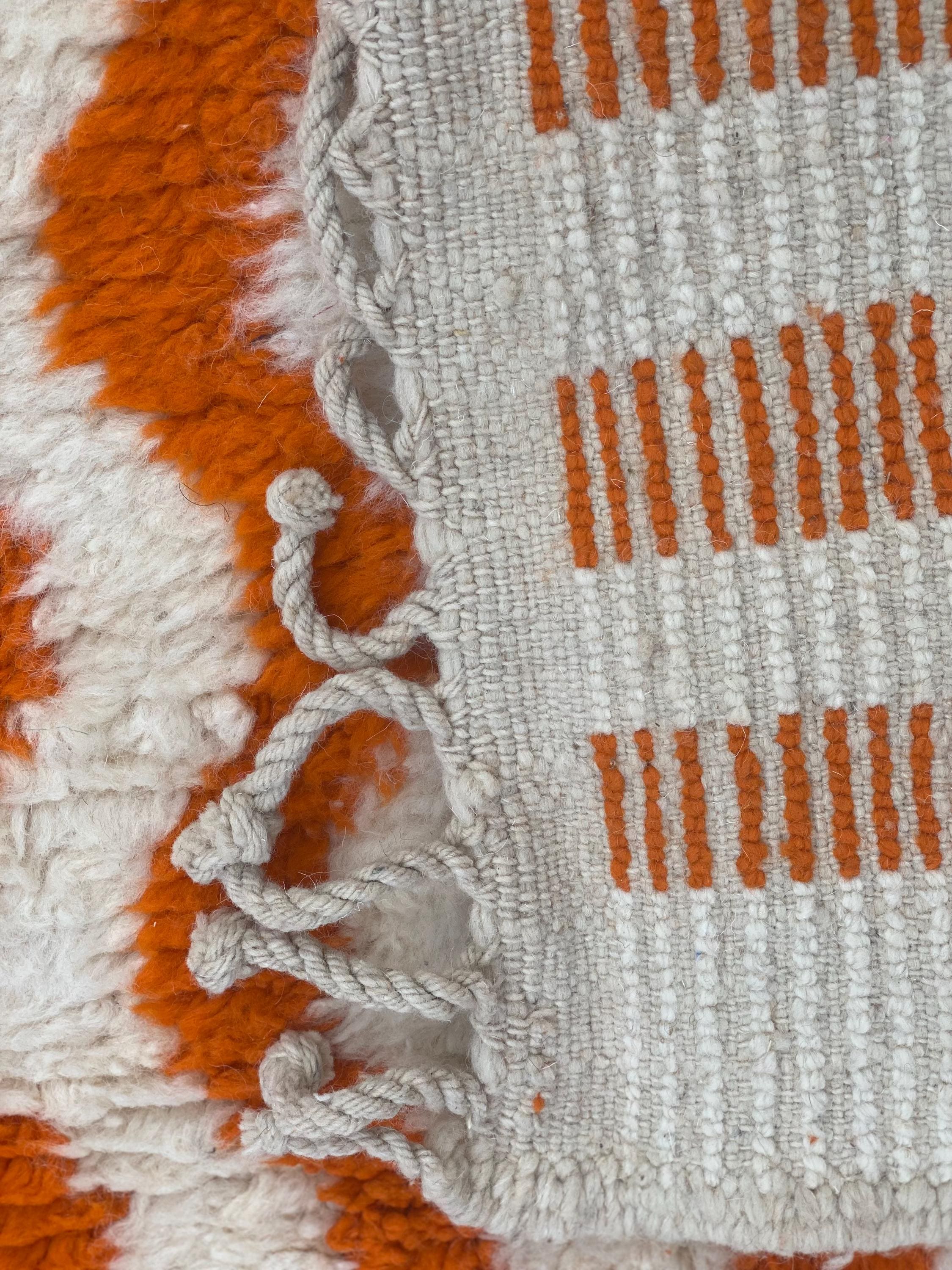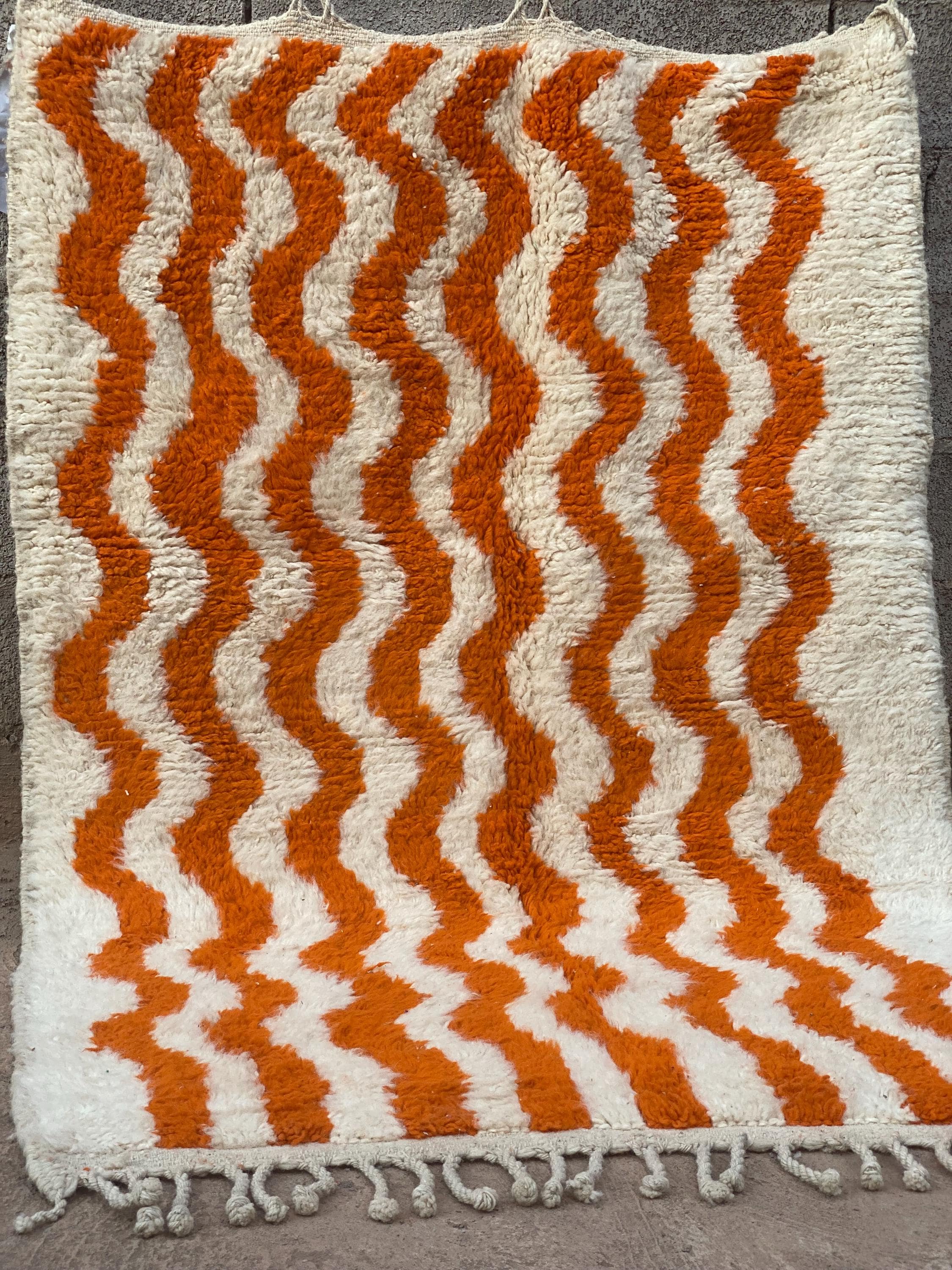 Add a splash of Moroccan sunshine to your space with this stunning handwoven orange and cream chevron rug. Each wave is carefully crafted by skilled Berber artisans using traditional techniques passed down through generations.