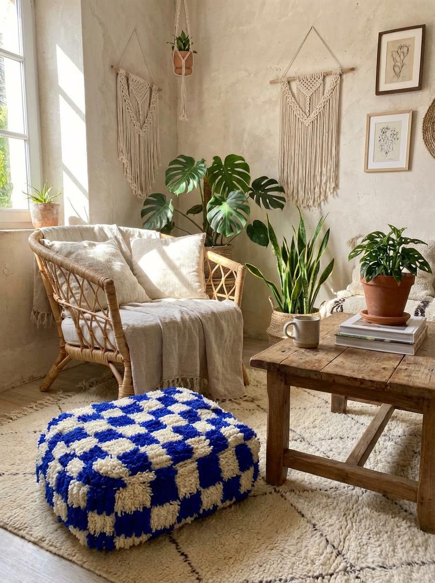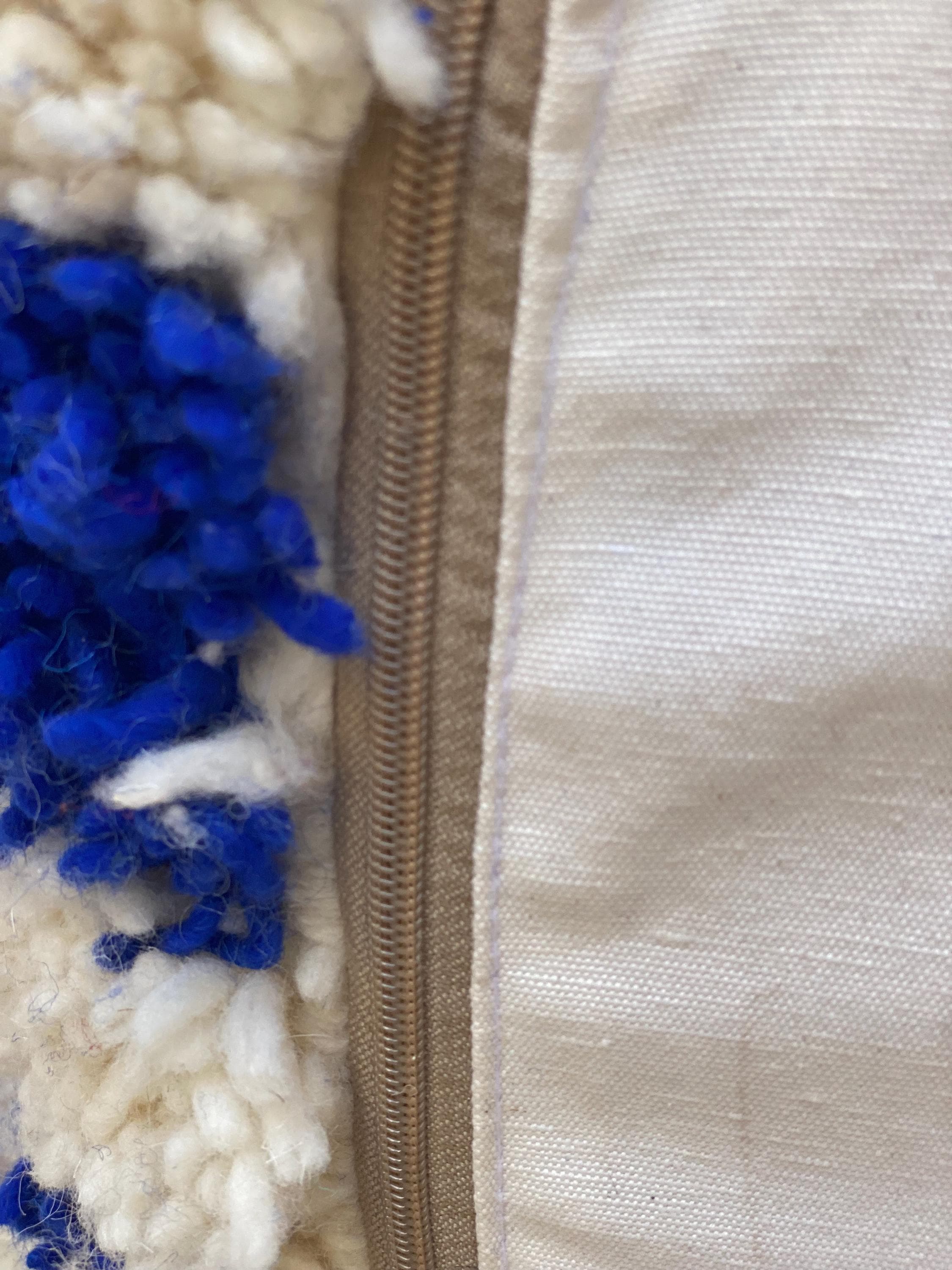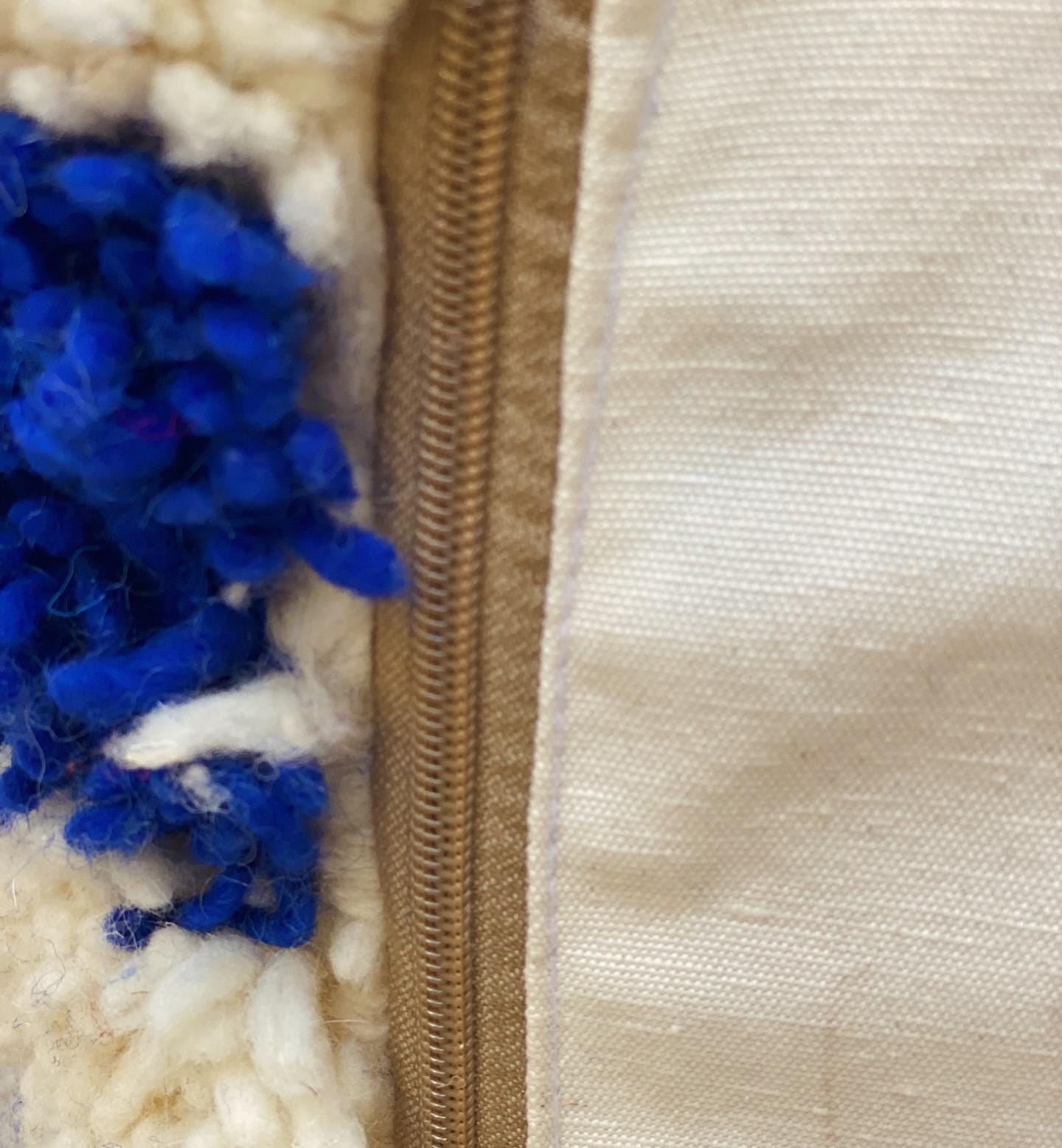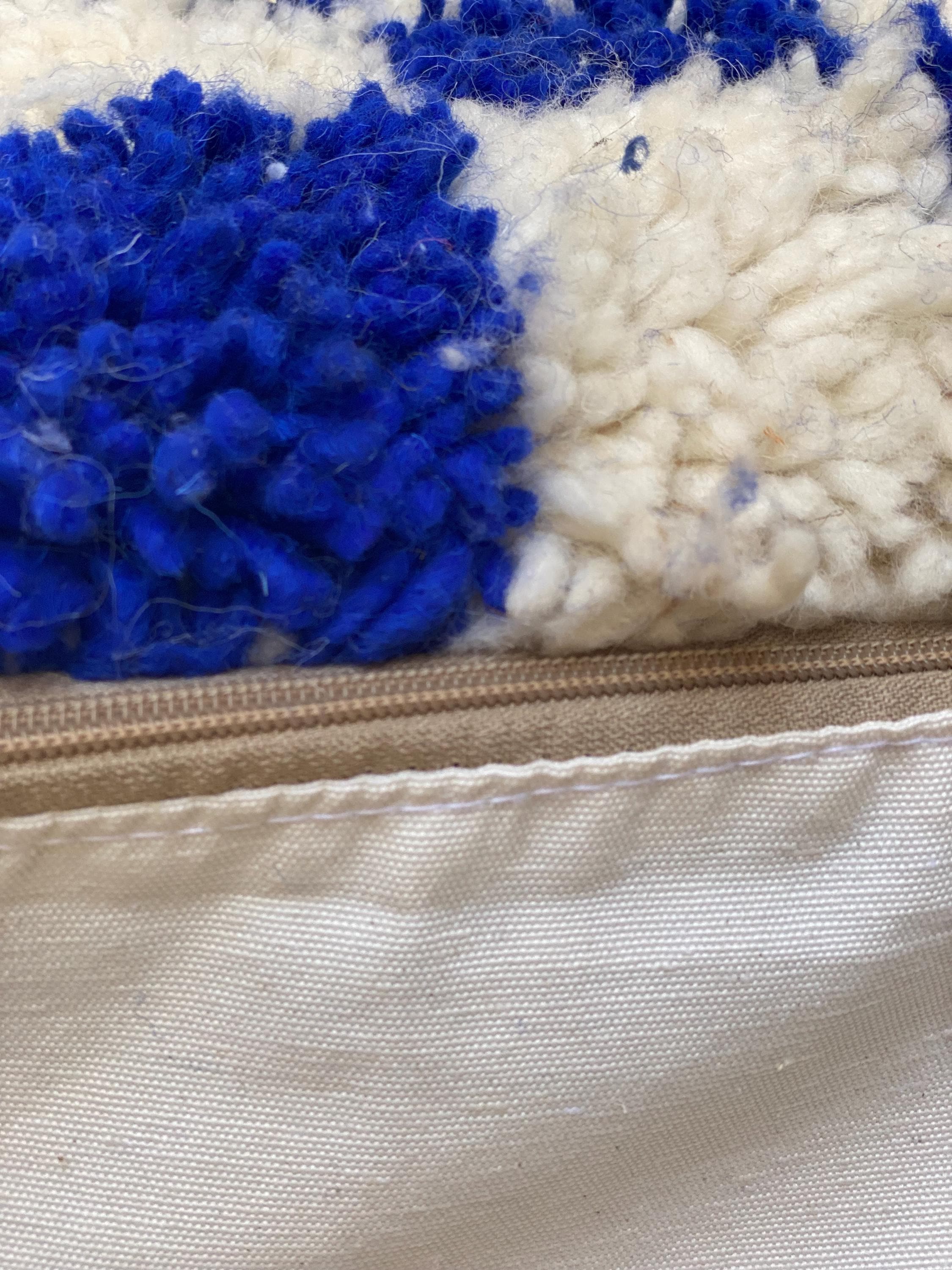 This gorgeous handwoven Moroccan pouf brings instant boho charm and cozy seating to any space. Featuring a stunning cobalt blue and cream checkered pattern with plush, cloud-like texture.