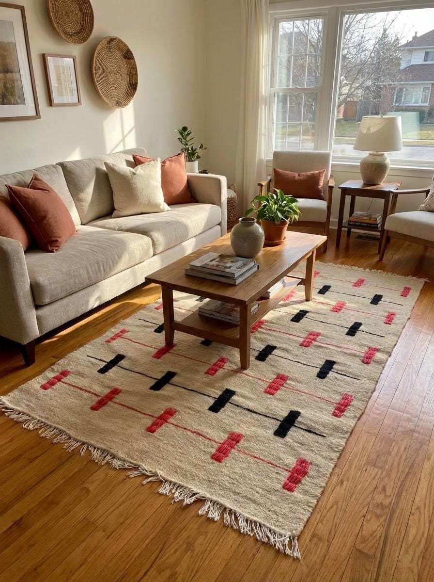 ✨ Elevate your everyday style with this Striking Geometric Accent Rug. Handcrafted from natural wool, it’s designed for those who love modern minimalist design and authentic craftsmanship.