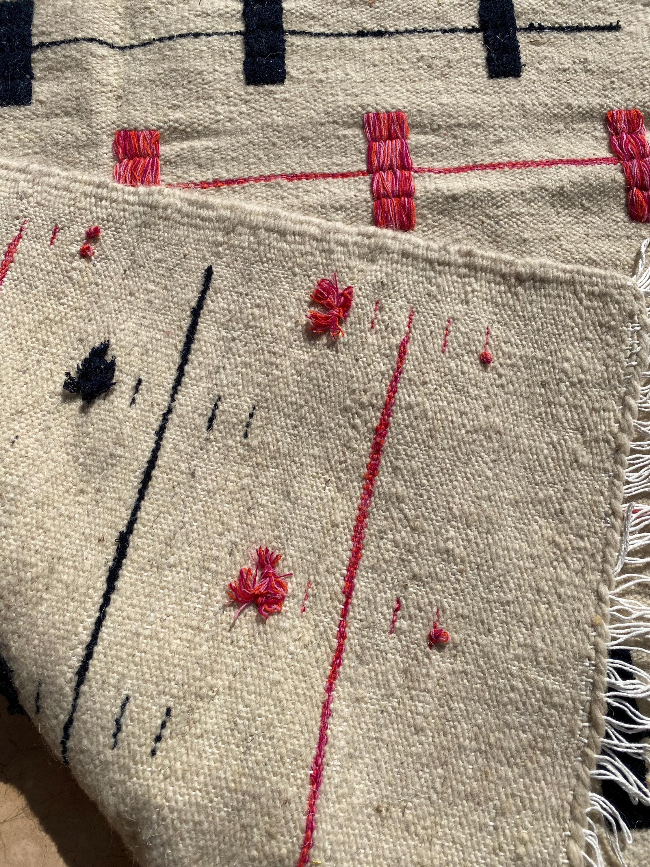 Each piece is carefully handmade by skilled artisans, making every rug unique. The natural wool offers a rich texture and comforting feel underfoot, creating a unique warmth in your home. This type of weaving technique, often associated with Berber traditions, connects your space to a story of heritage and enduring artistry.