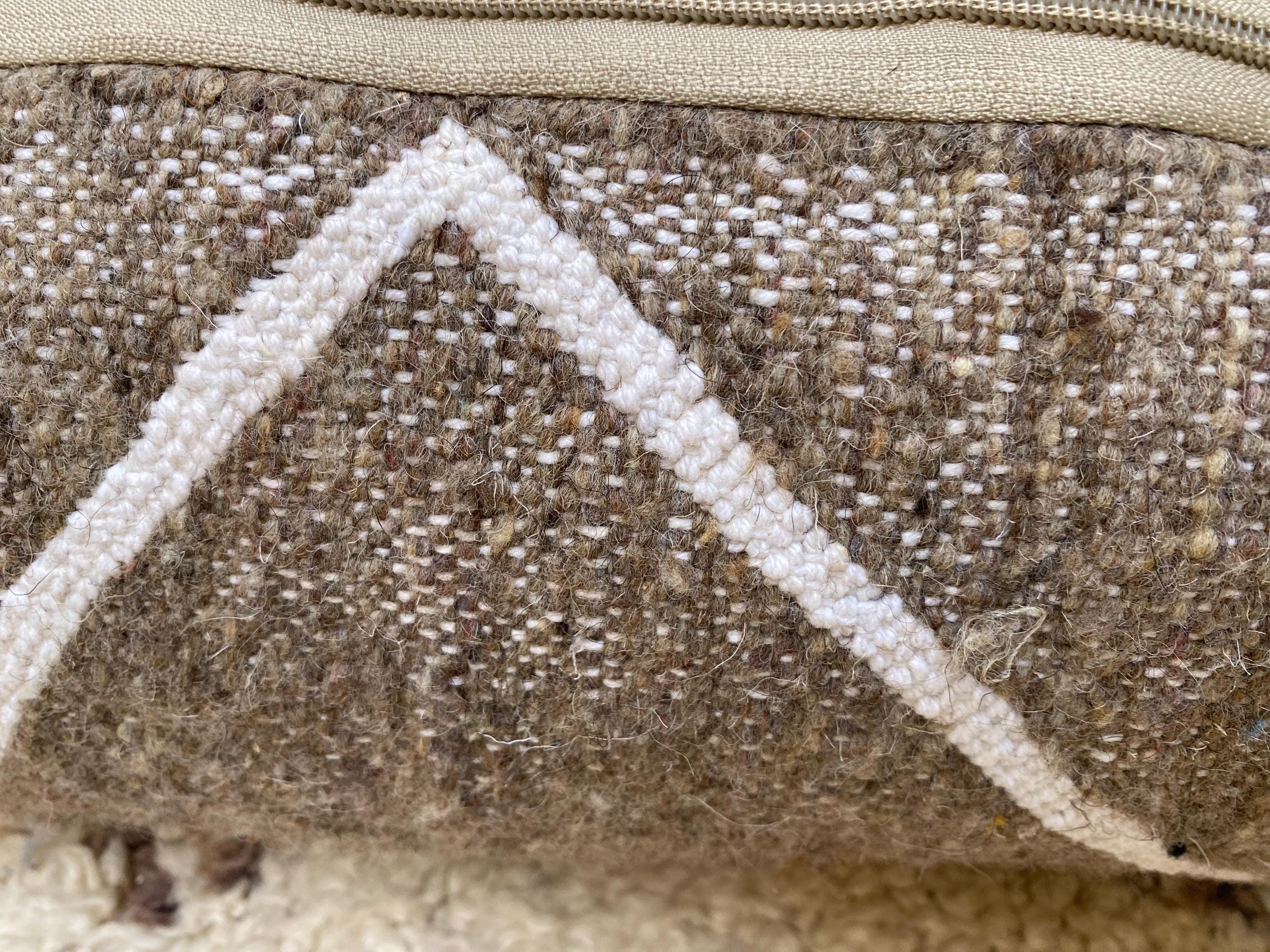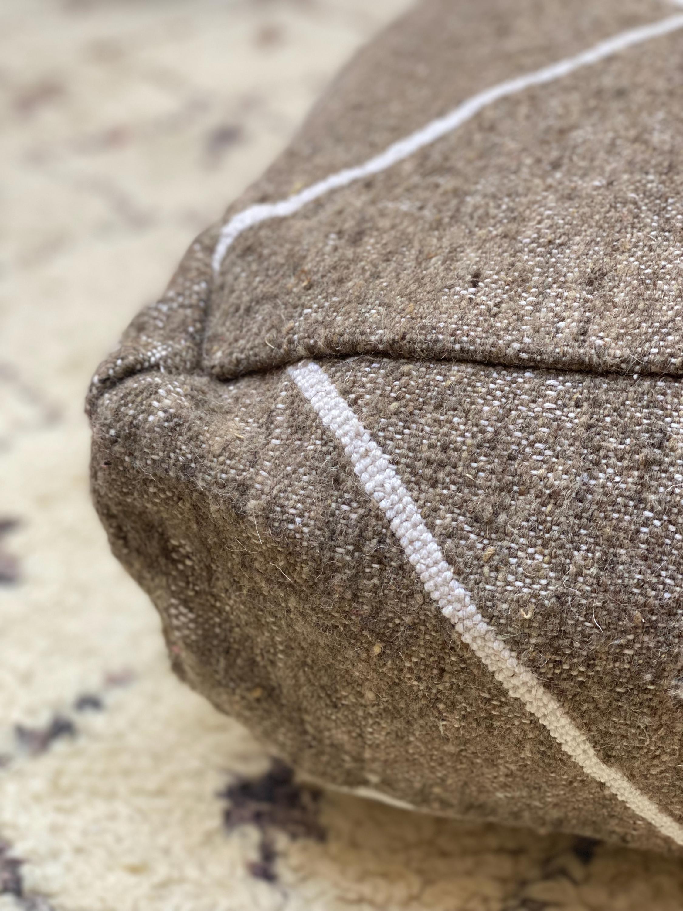 Each pouf is individually handwoven using traditional techniques passed down through generations, ensuring that your piece is truly one-of-a-kind. The natural textured fabric and timeless diamond motif bring warmth and character to your home while providing comfortable, functional seating or a stylish footrest.