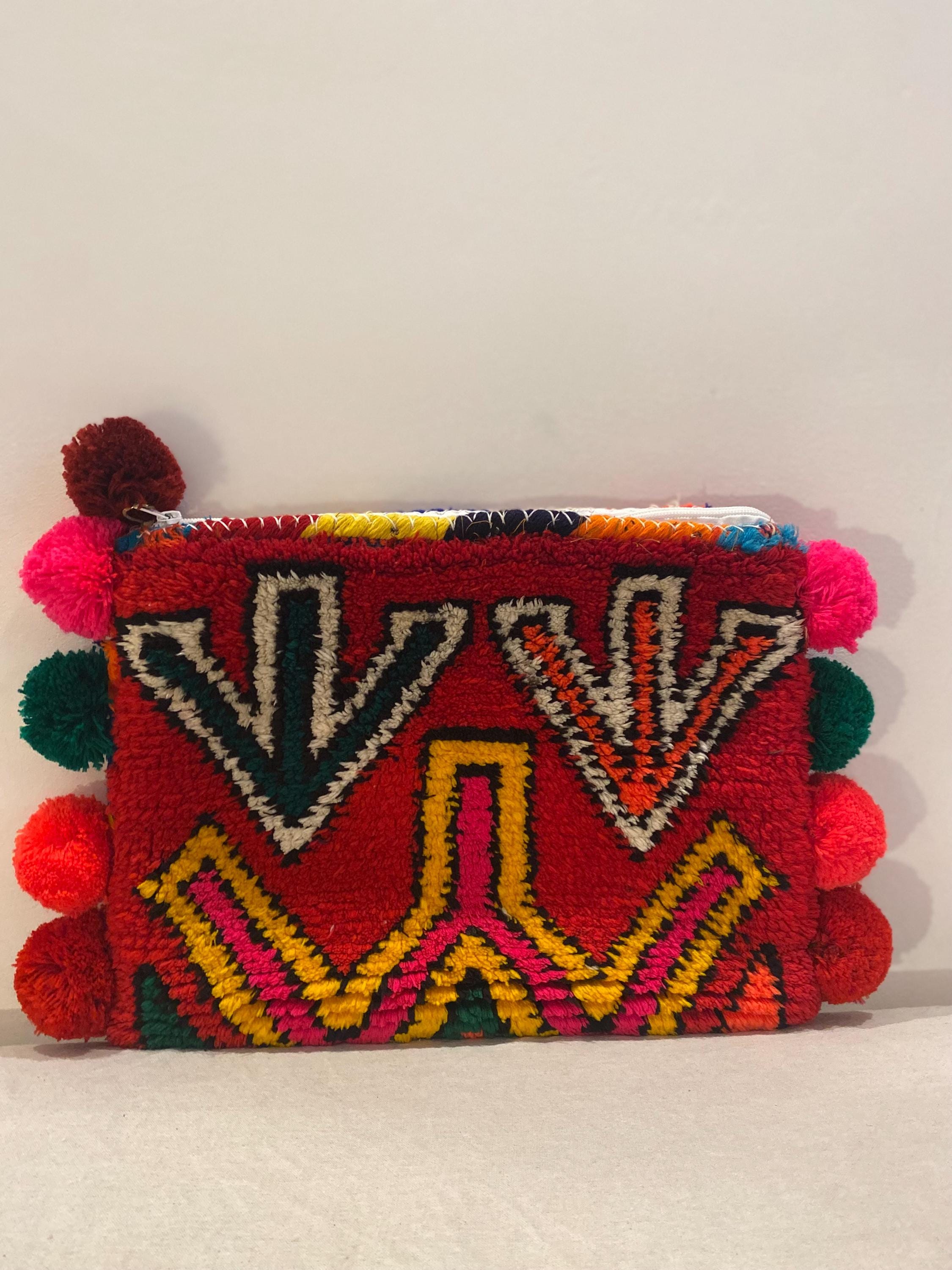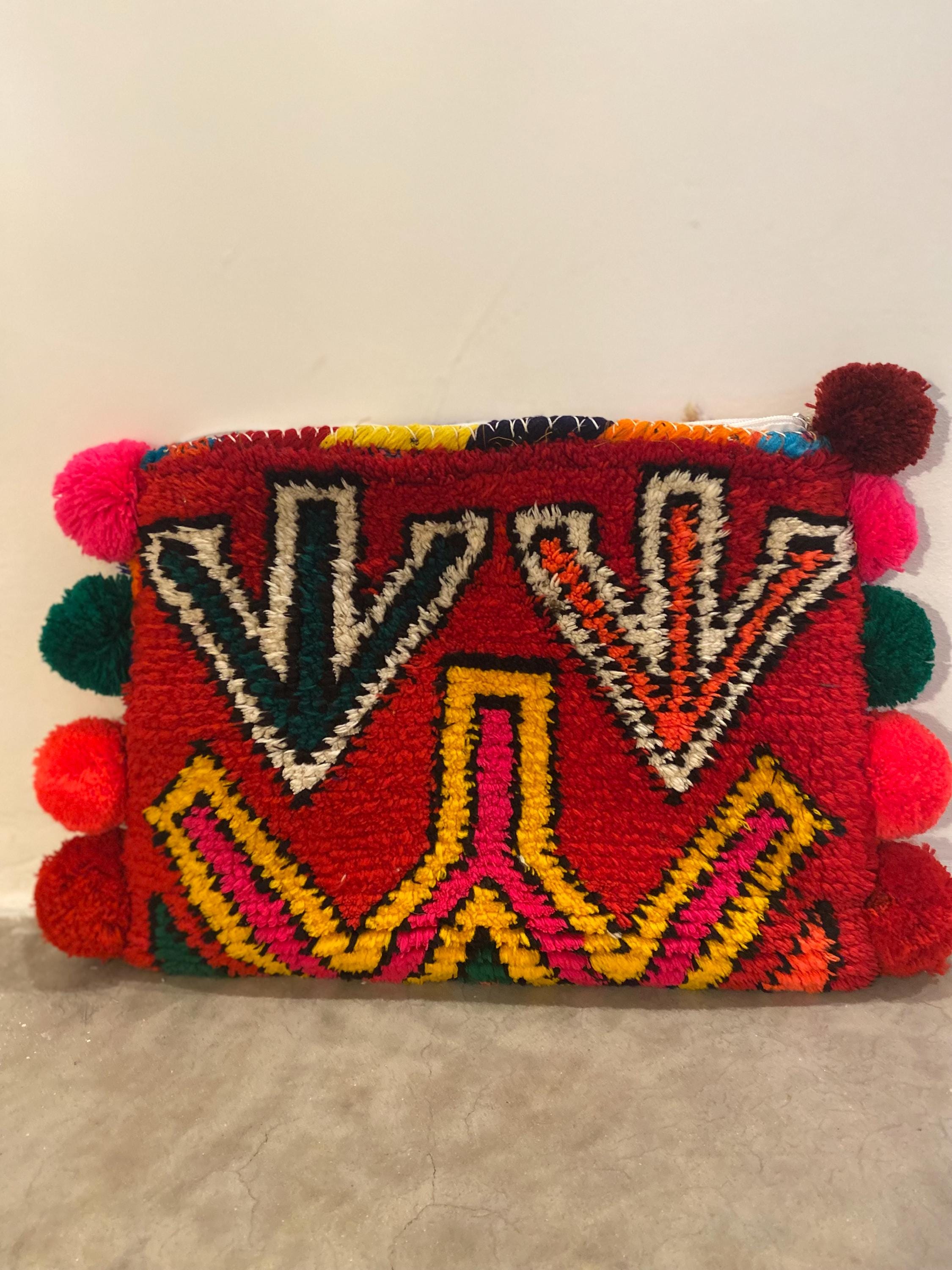 This stunning one-of-a-kind clutch bag is a celebration of Moroccan craftsmanship and vibrant color. Handcrafted by me using authentic Berber carpet textile, this unique purse brings the rich tradition of Anti Atlas weaving into a functional, eye-catching accessory.