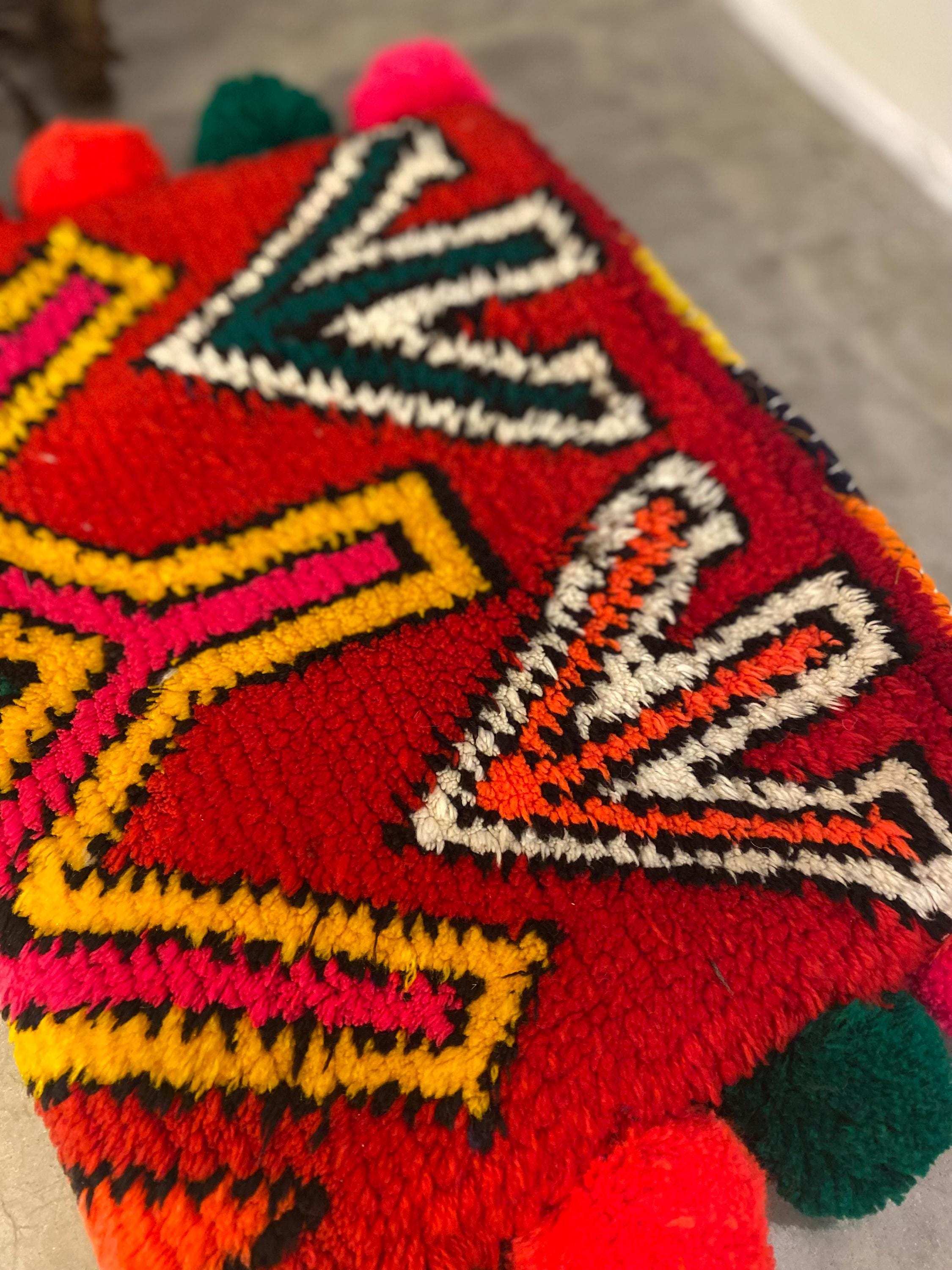 At Carpet Timizar, I transform authentic Moroccan textiles into unique, functional accessories. Each piece I create honors the artisans who wove the original carpets while giving these beautiful textiles new purpose and life. This clutch represents hours of careful work—from selecting the perfect section of carpet to hand-sewing each seam and attaching each pom pom.