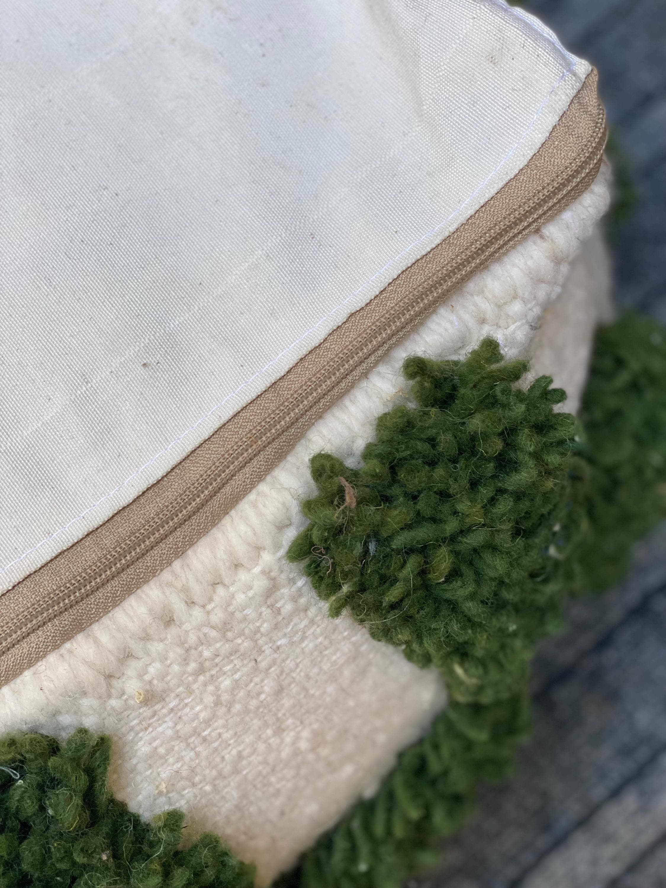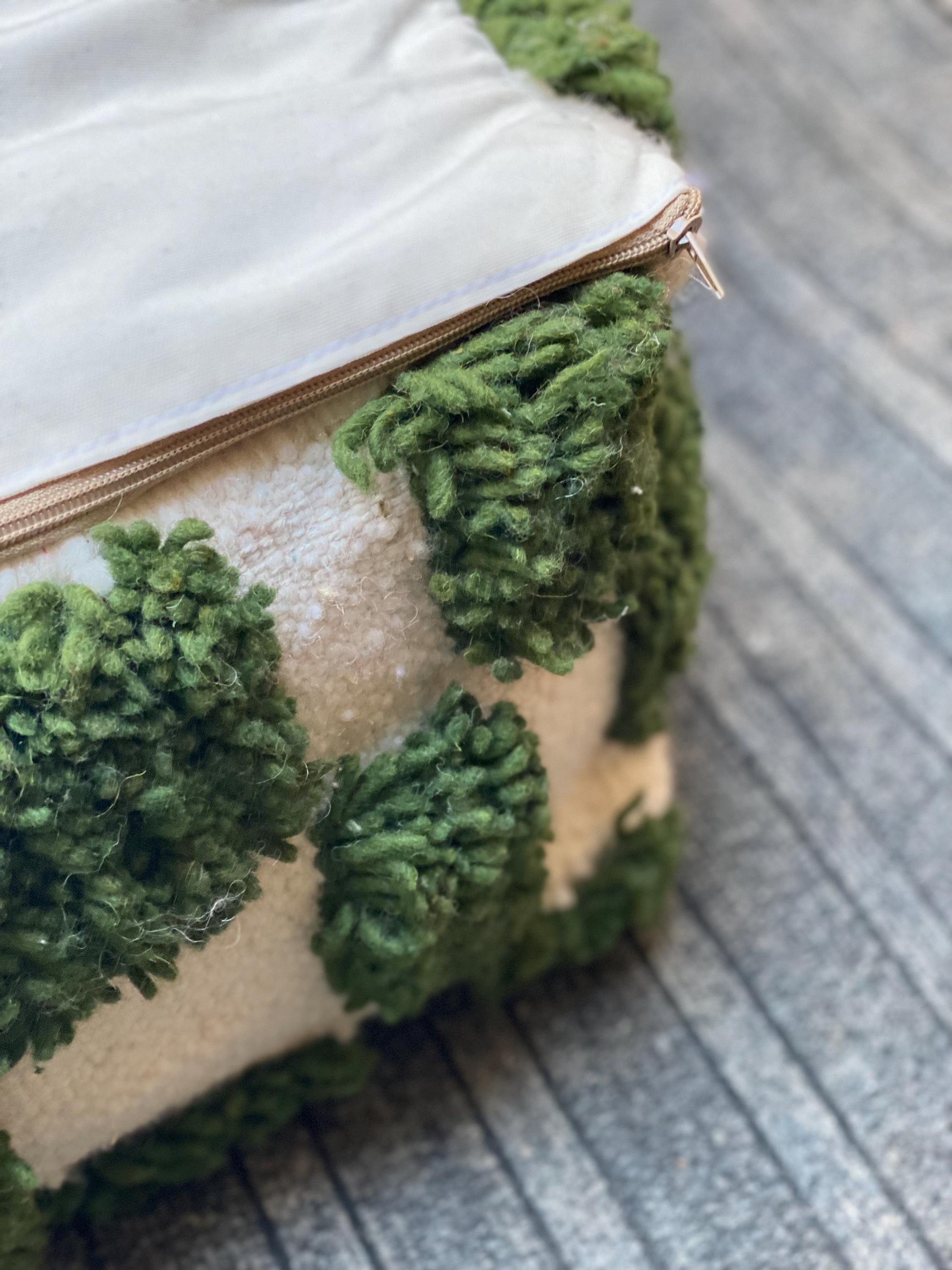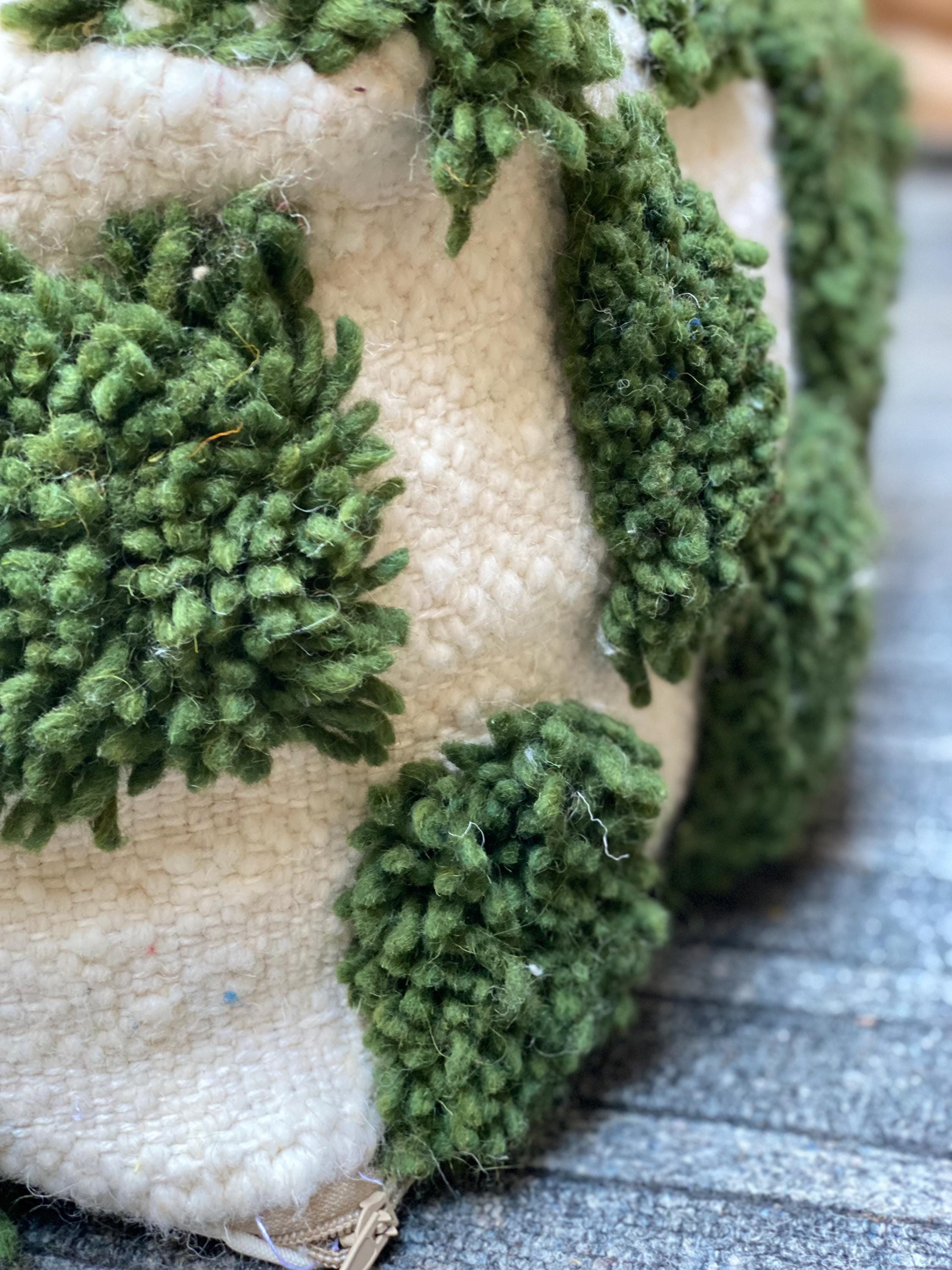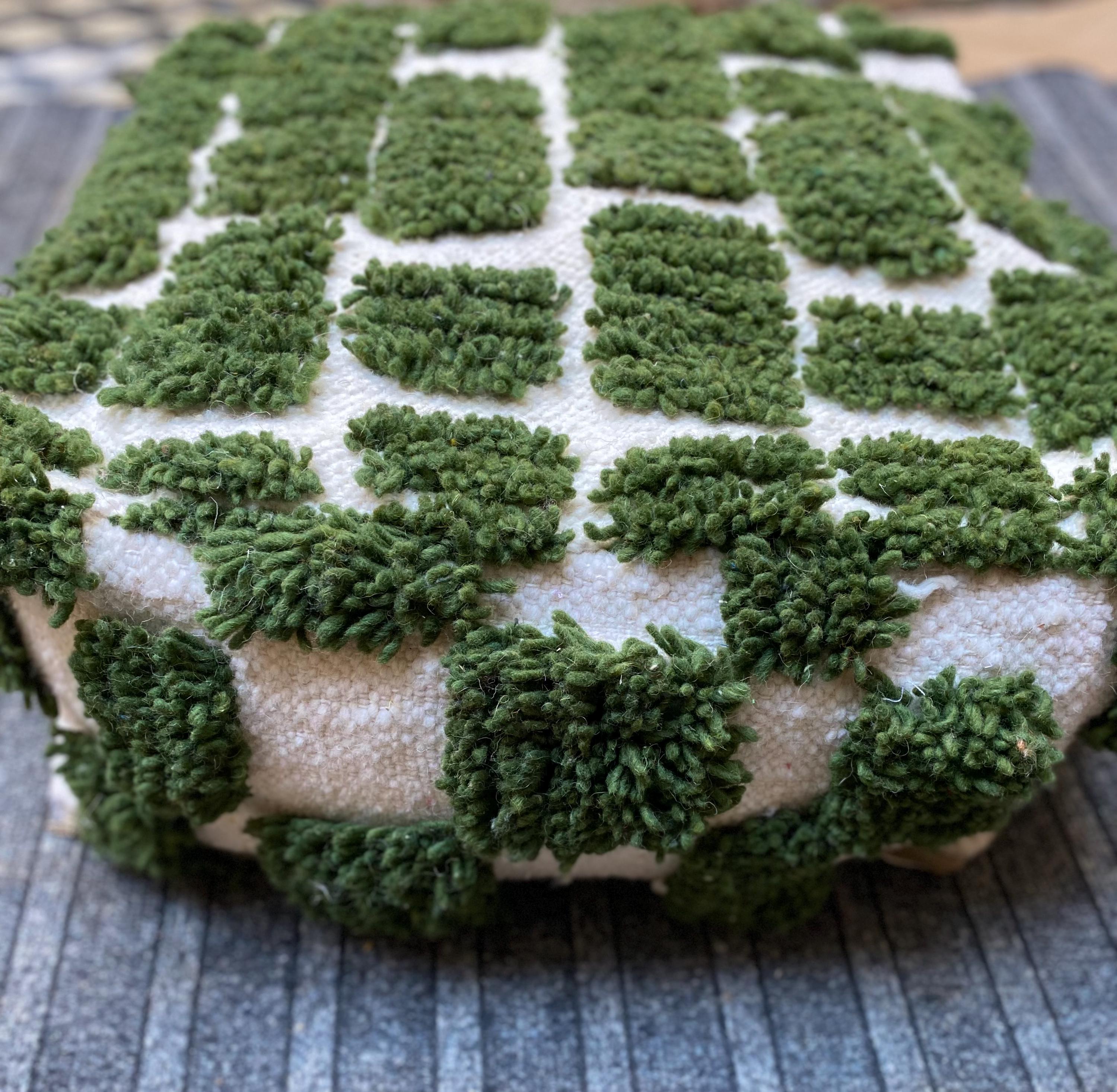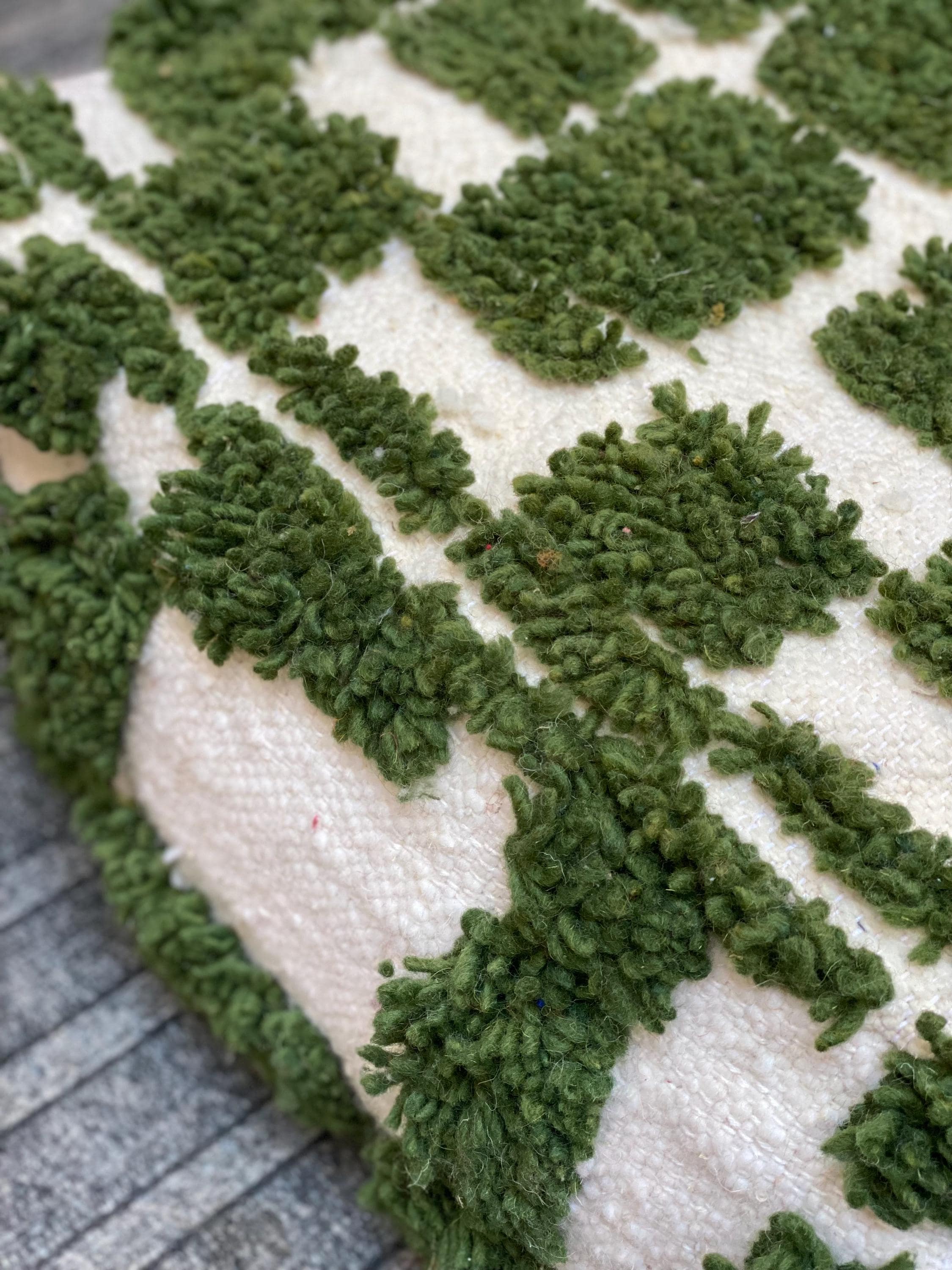 Each pouf is carefully crafted with attention to detail, showcasing the rich textile traditions of Moroccan artisanship. The calming green color creates a peaceful, organic atmosphere in any room, while the geometric pattern adds visual interest and cultural authenticity. The natural green shade pairs beautifully with whites, neutrals, woods, and earth tones. Lightweight yet sturdy, it's easy to move around your space as needed.