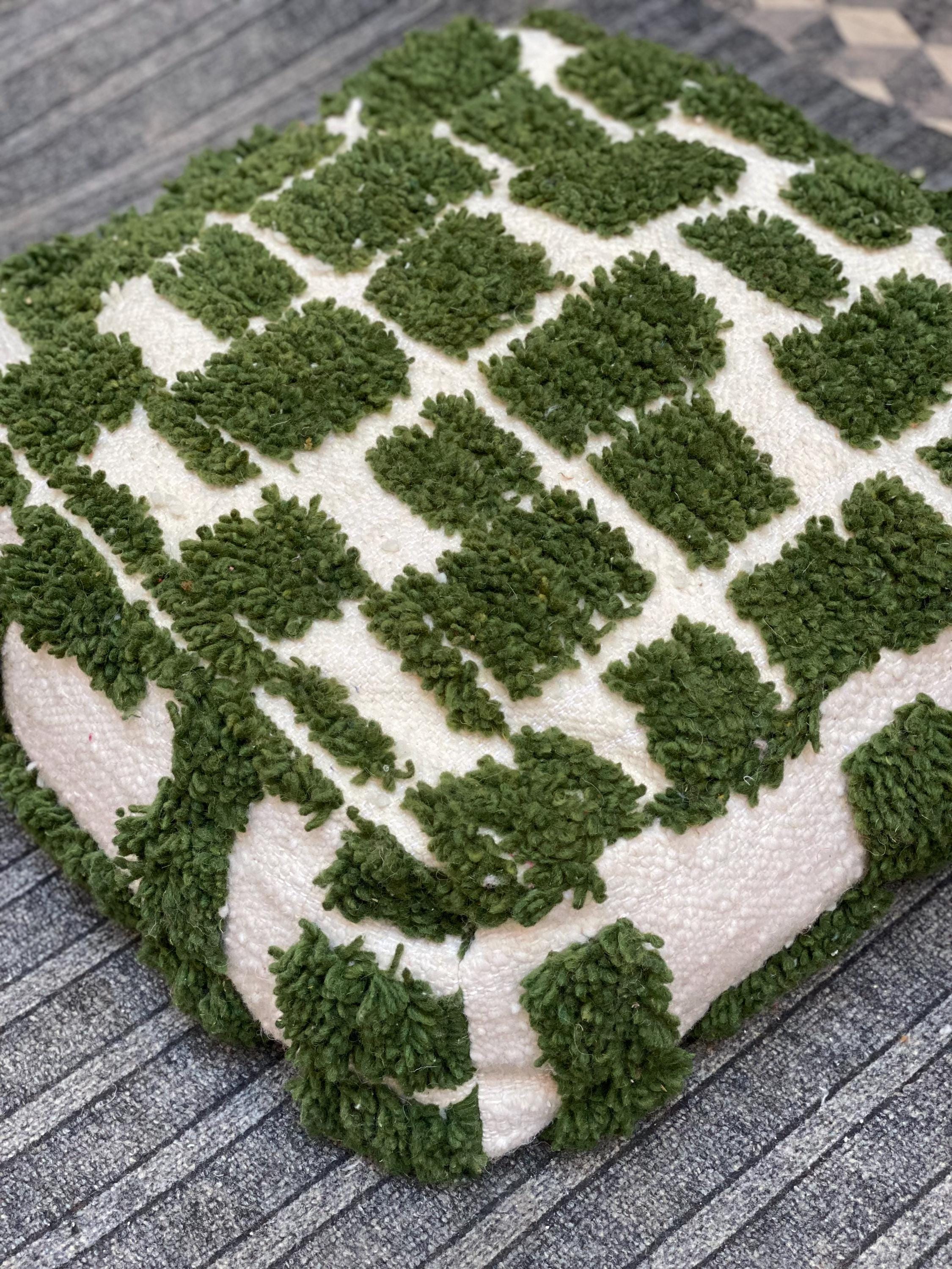 Bring natural elegance and cultural richness to your home with this beautifully handwoven Moroccan pouf. Featuring a fresh green and white brick pattern, this versatile floor cushion combines traditional craftsmanship with organic, nature-inspired style.