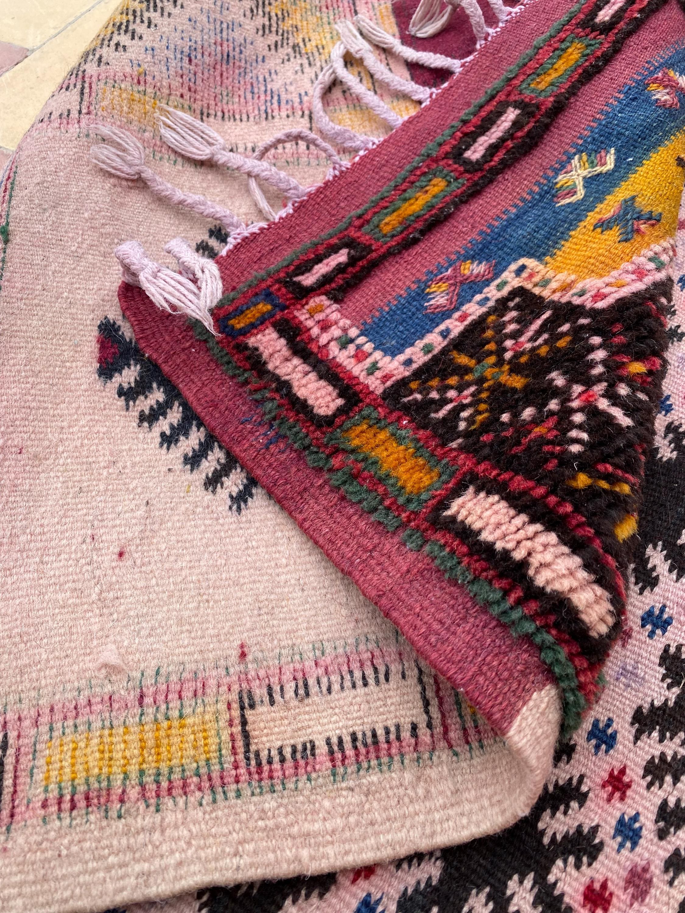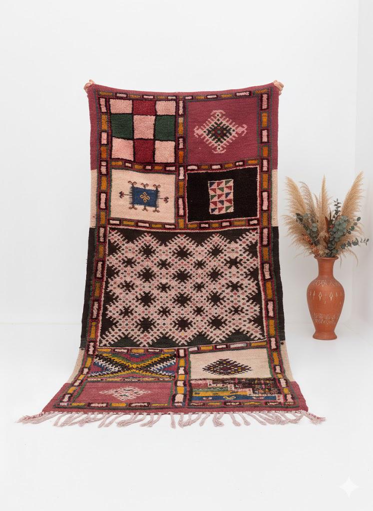 Each section of the patchwork tells its own story, making this a truly one-of-a-kind piece that cannot be replicated. Perfect for hallways, living rooms, bedrooms, or any space that needs a touch of Moroccan soul and bohemian charm.