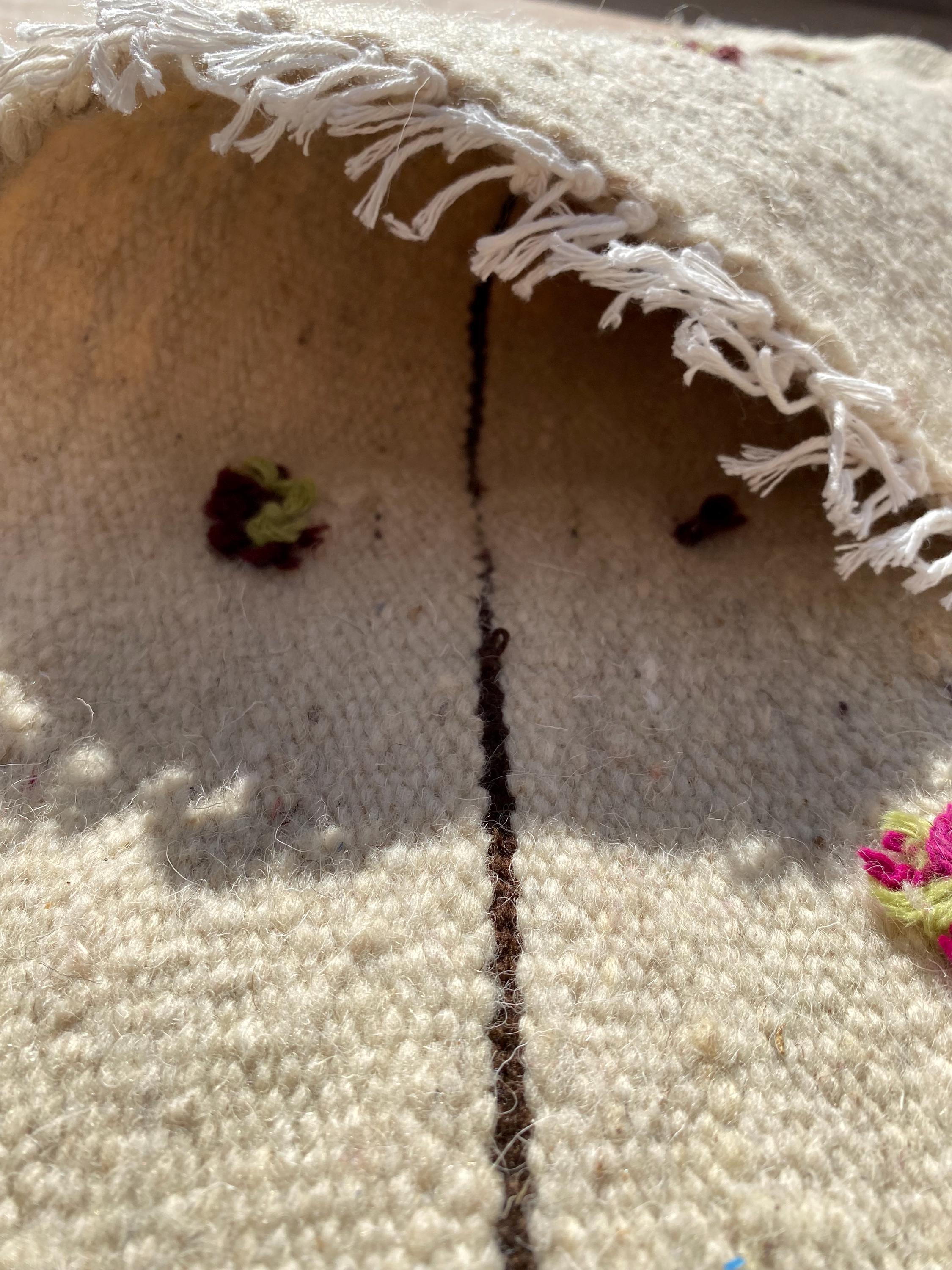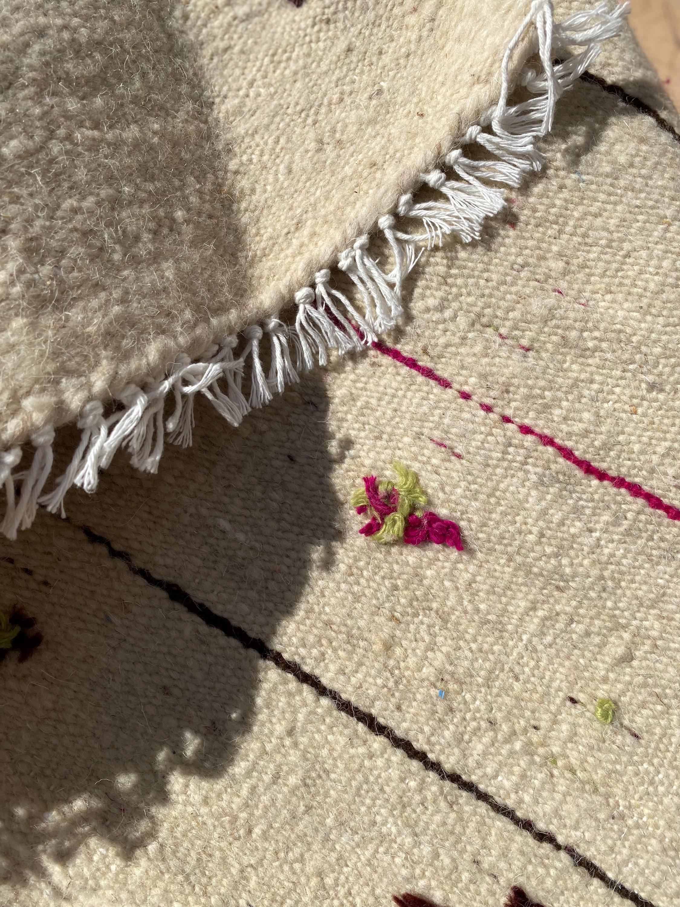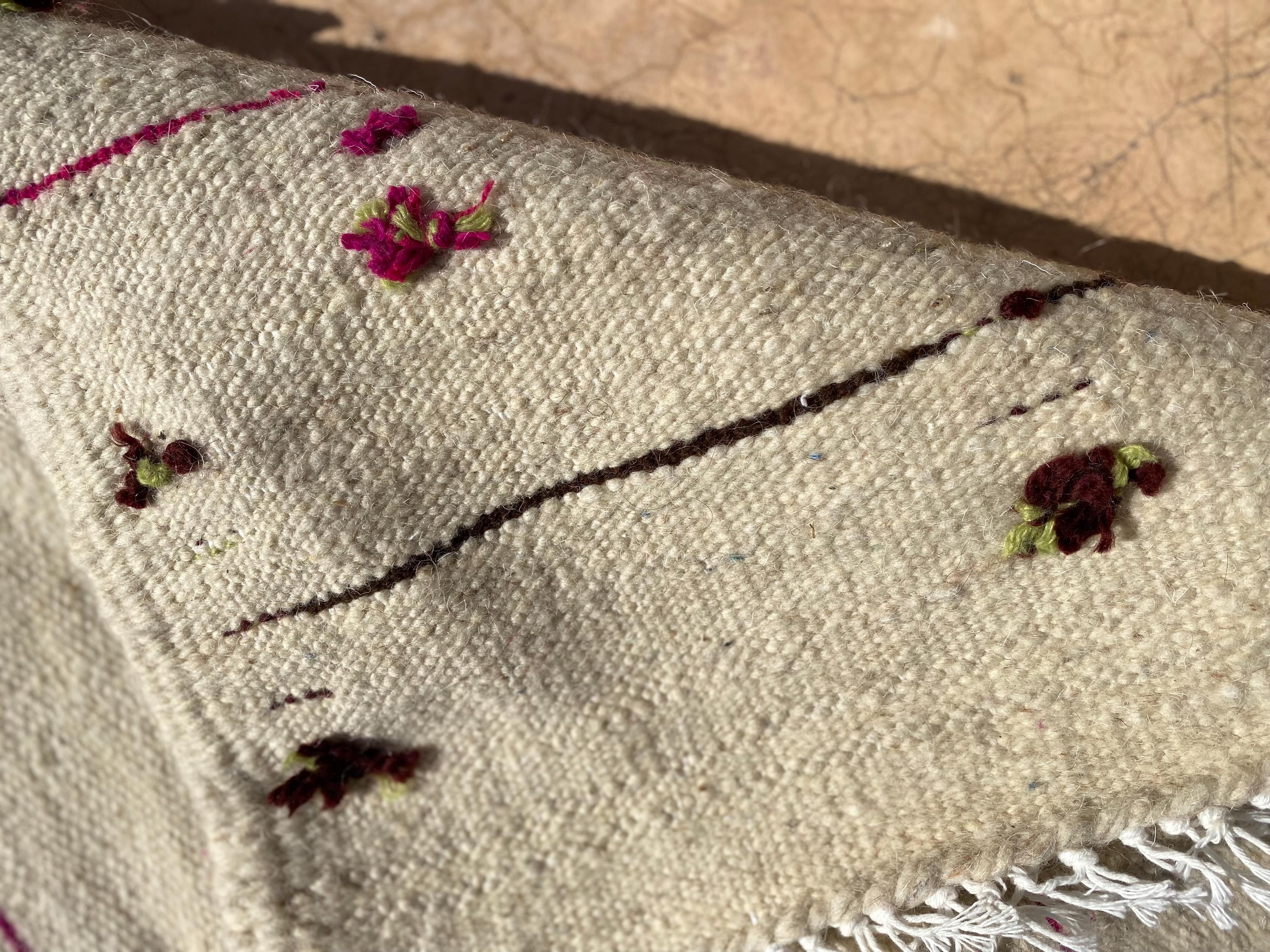 Elevate your space with this stunning handwoven Moroccan kilim rug featuring a minimalist geometric design.