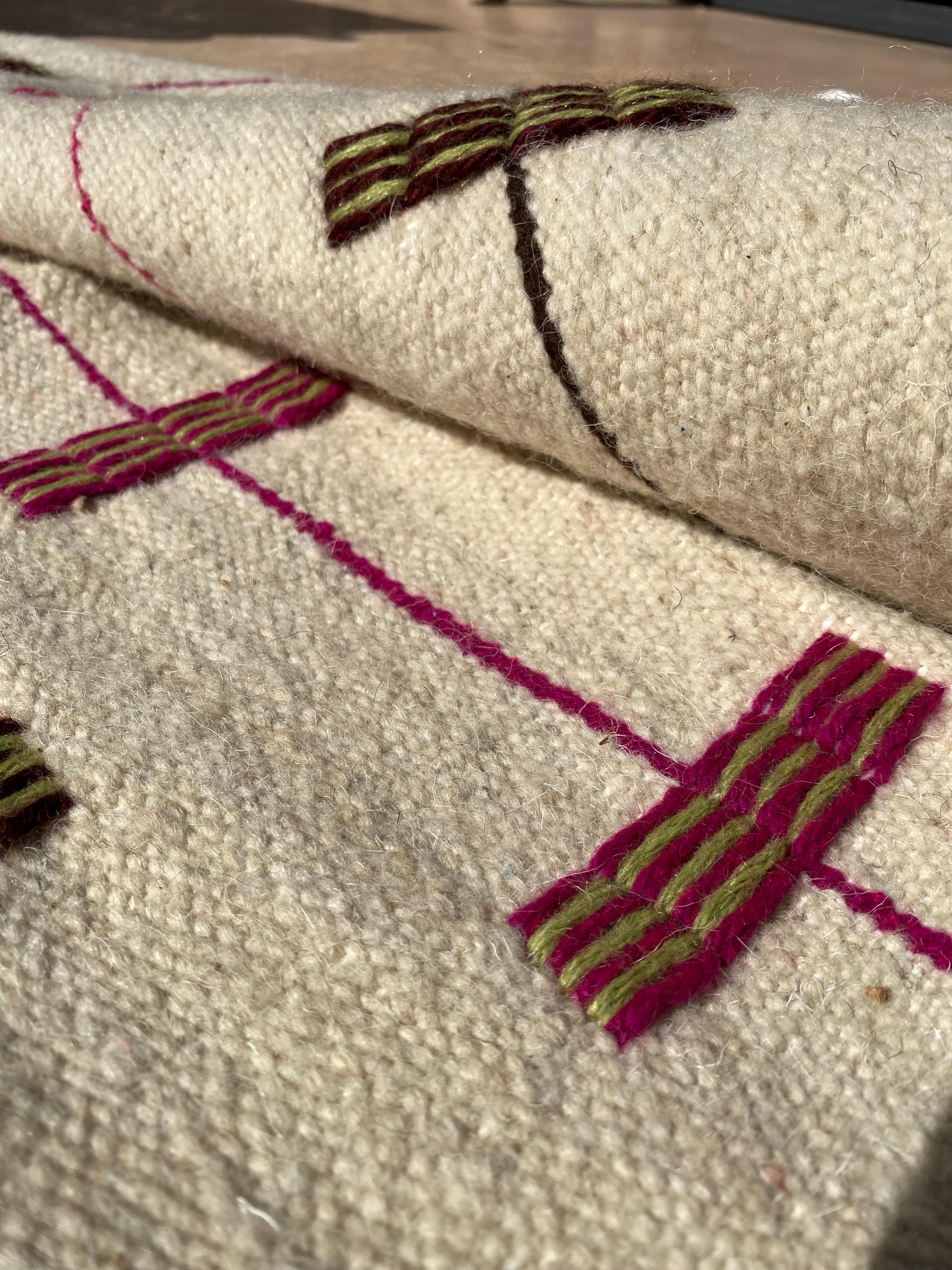 This kilim rug perfectly complements bohemian, modern, minimalist, and eclectic interior